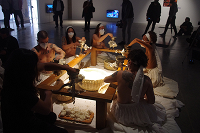 The Body Speaks, as an expanded laboratory makes the workshop and exhibition hall a collective exercise of creation and research where men and women are exposed to shout in silence the horrors of war, violence against women, human insensitivity, environmental disasters, forced disappearances, violence against the body, in acts of resistance, fable, emancipation, or rejection against what happens. Fernando Pertuz