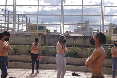 The Body Speaks is a group of human beings that converge because of their common interests, to dialogue through the body, the unity, the ritual, the resistance; always thinking about the other, the river, the environment, the woman, the subjugated, the problems of the territory. It was founded through workshops directed by Angela Chaverra in 2003, to expand the studies of the arts of the body, with a socio-political research focus, where students from different areas of the University of Antioquia learn and contribute from their area of knowledge to consolidate the collective.